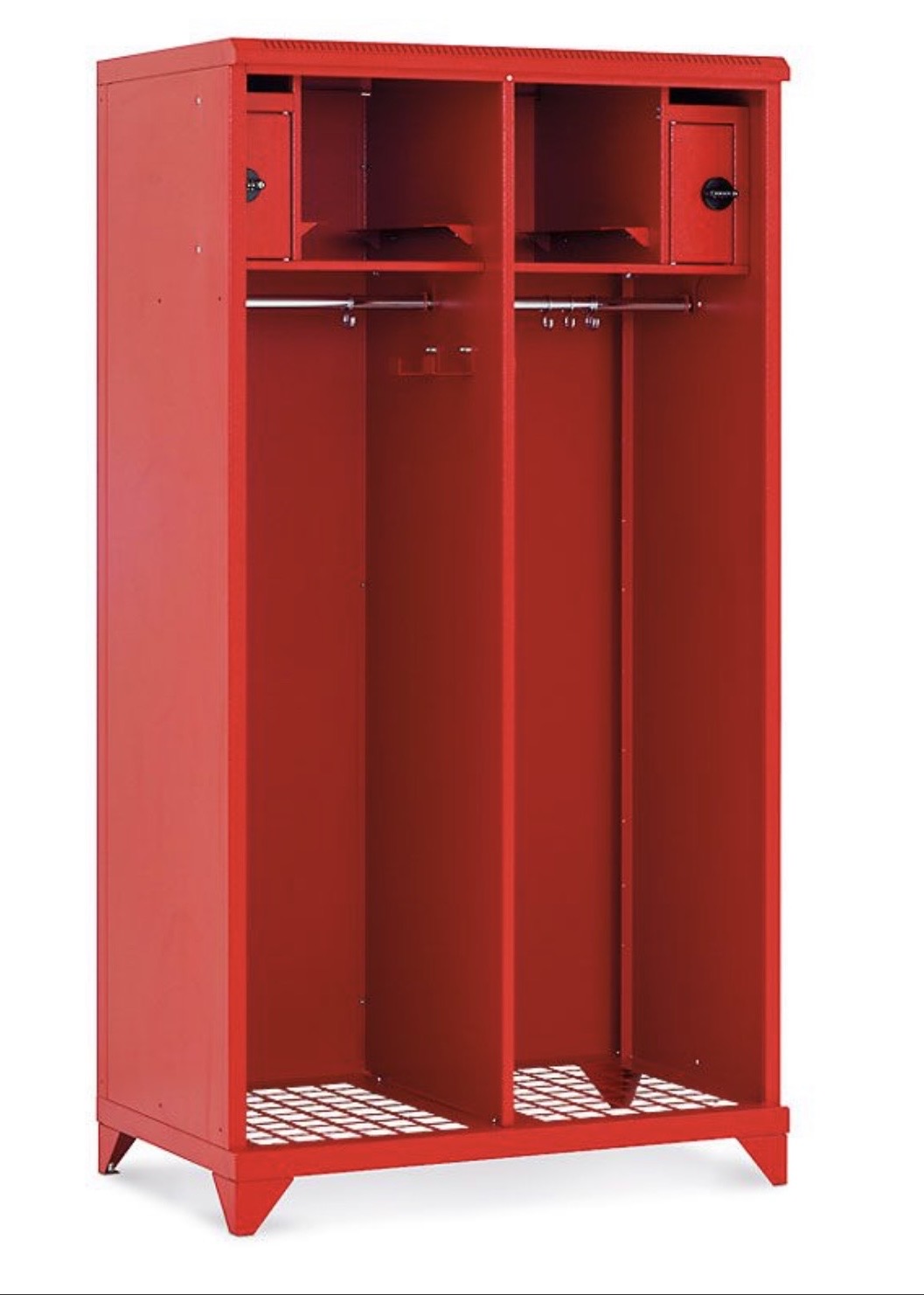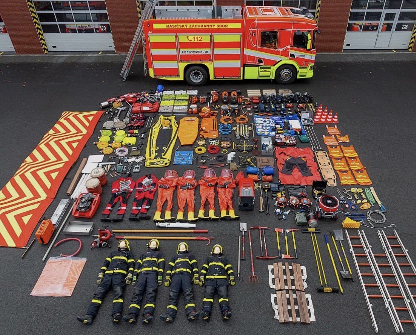 Skříňka je otevřená, aby výstroj byla ihned dostupná a po zásahu dostatečně větraná.