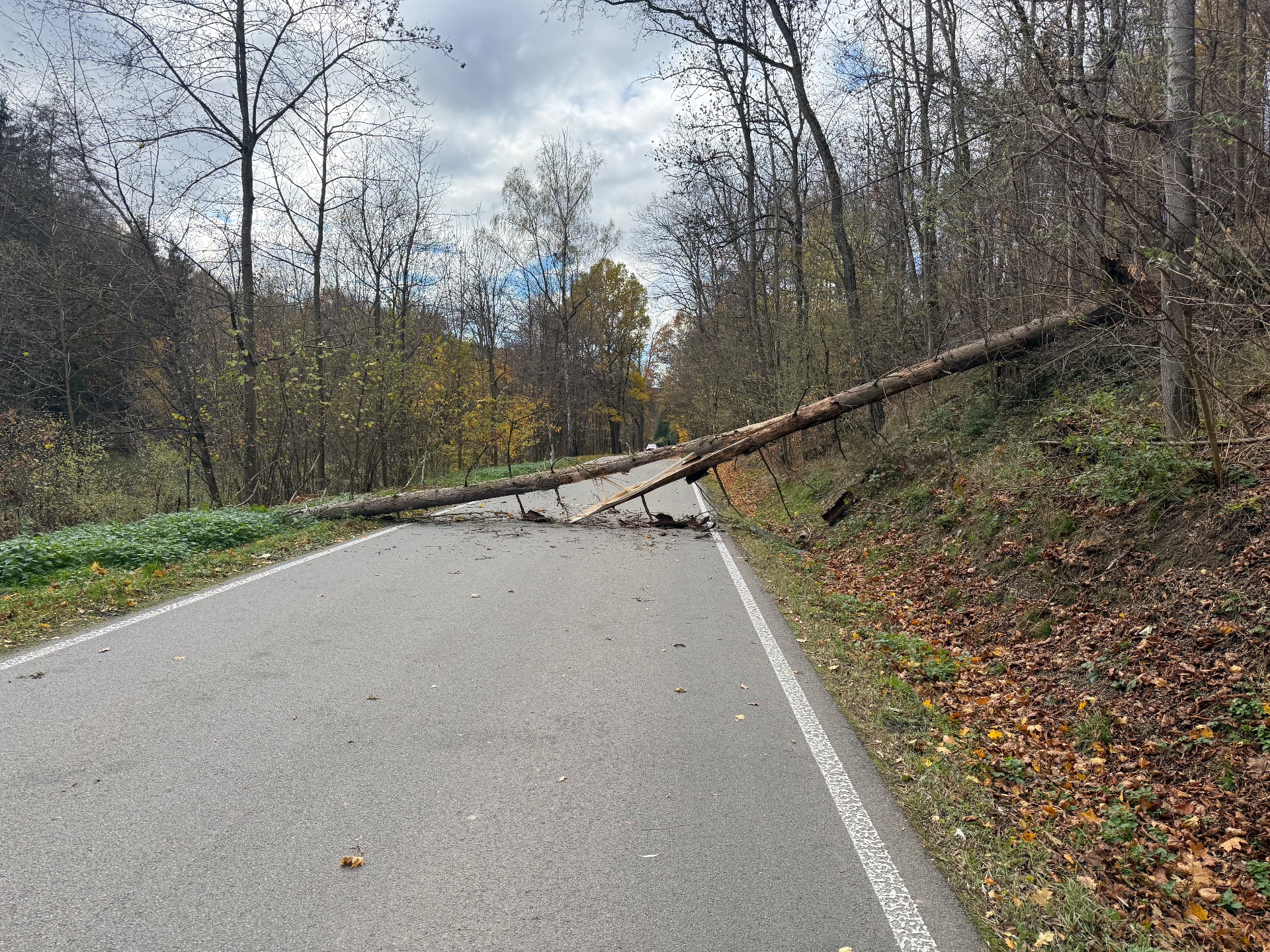 Jednotce byl nahlášen pád stromu u ČOV přes hlavní silnici. Po příjezdu byl strom přes celou silnici a částečně i na pozemku ČOV. Bylo provedeno rozřezání motorovou řetězovou pilou a úklid vozovky.
