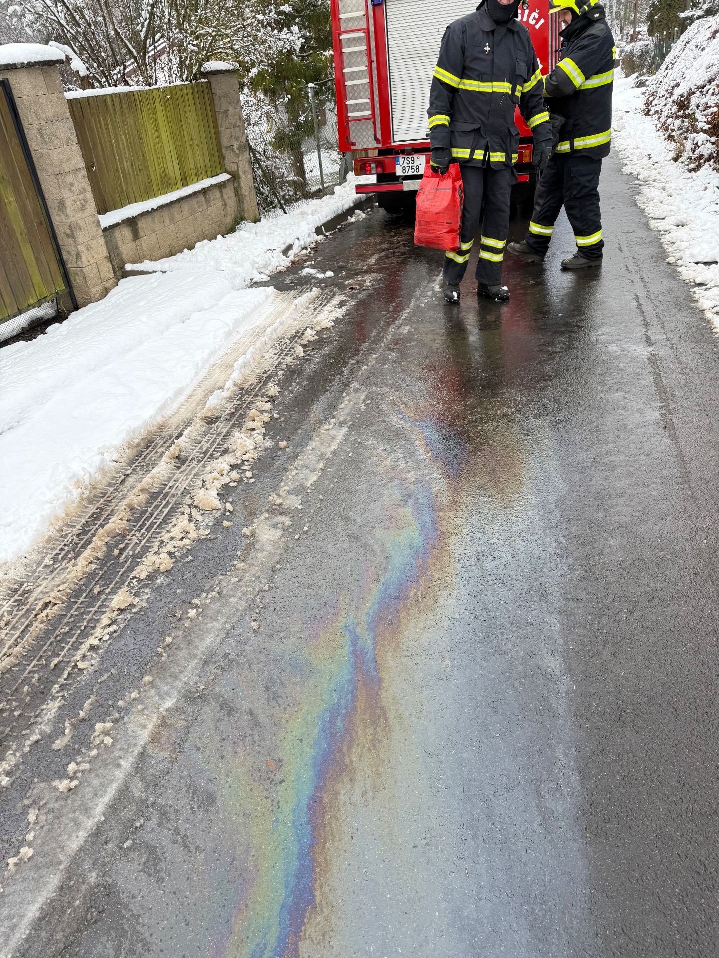 9.11.2019 Technická pomoc Pyšely - únik ropné látky na silnici - Na Košíku