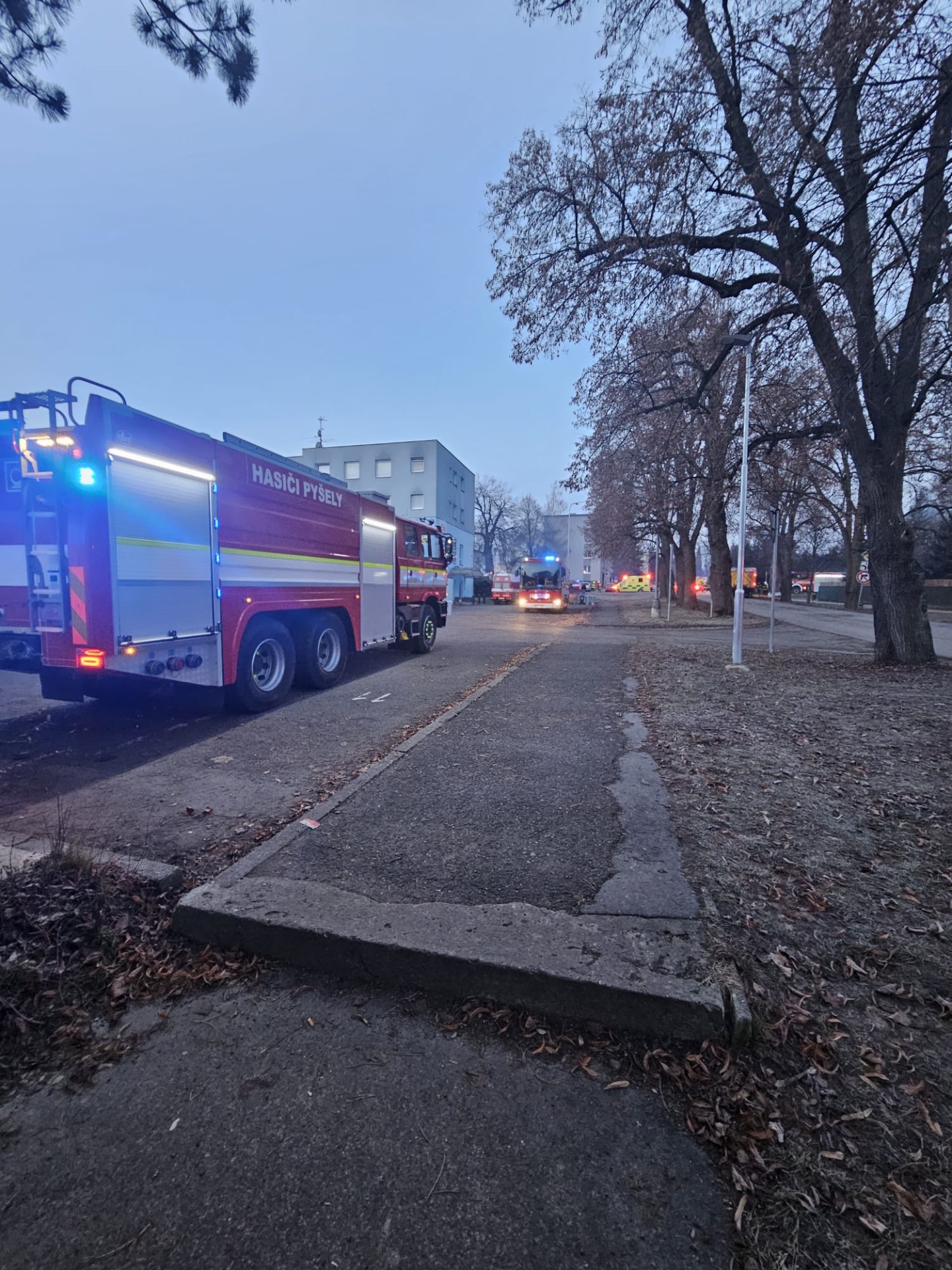 Jednotka po vyhlášení poplachu musela k místu události jet objízdnou trasou po silnici č.3